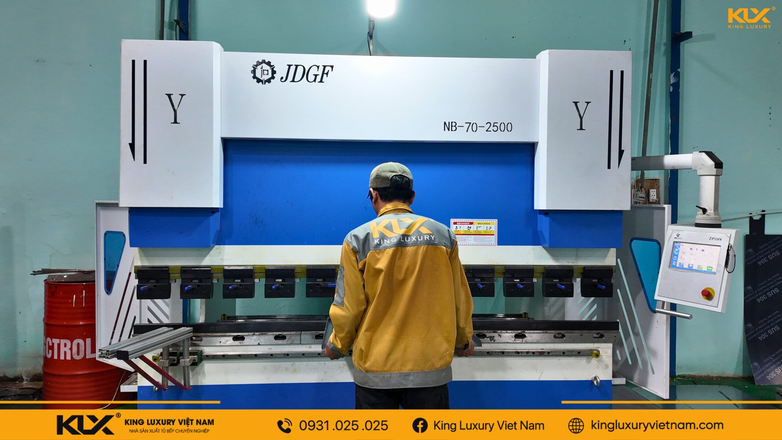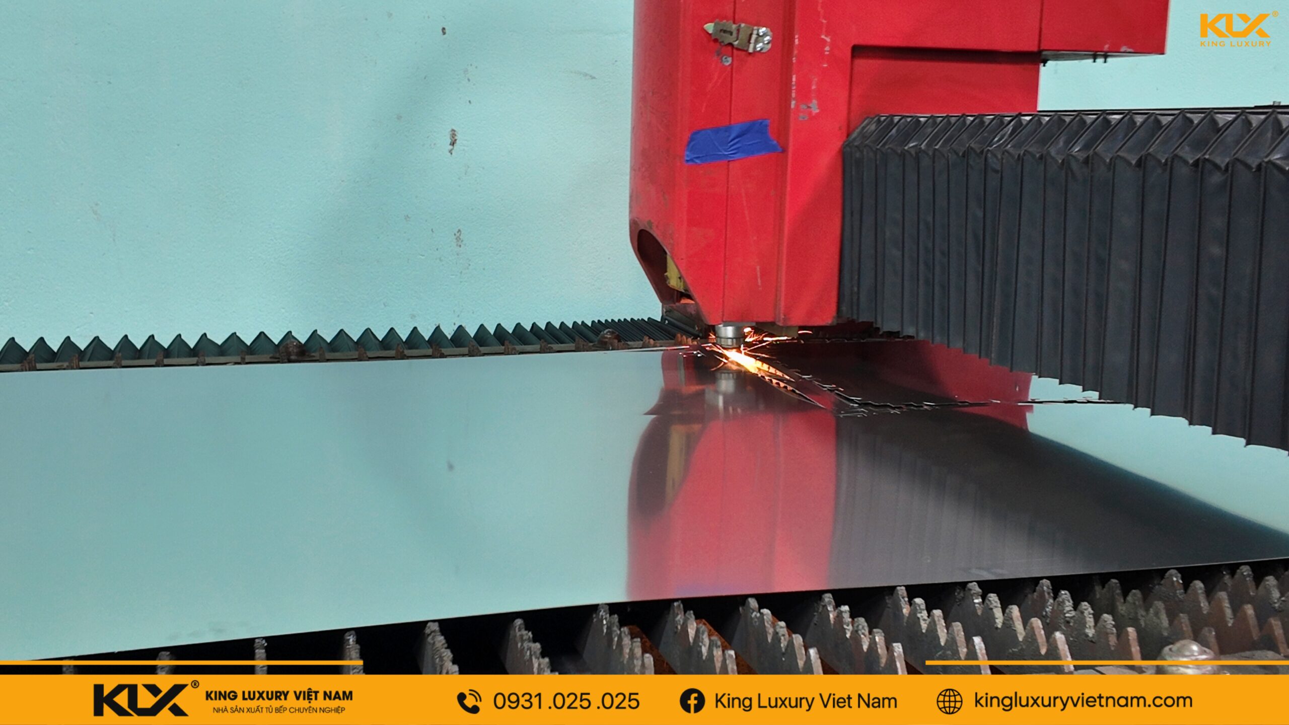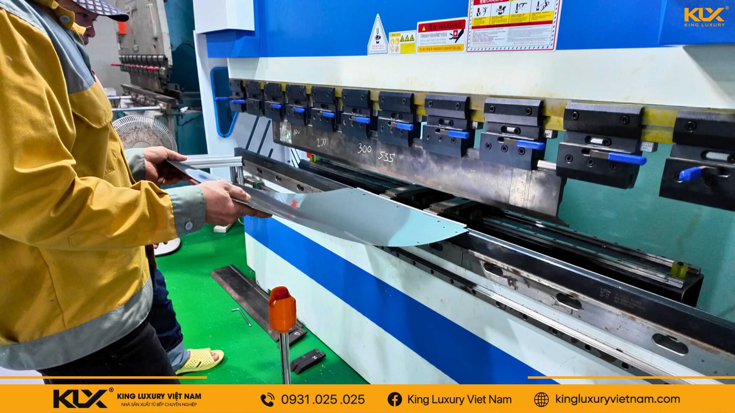 Công nghệ chấn gấp CNC tự động giúp sản phẩm đạt độ vuông, độ phẳng hoàn hảo, tăng độ cứng và độ bền cho thùng tủ bếp inox.